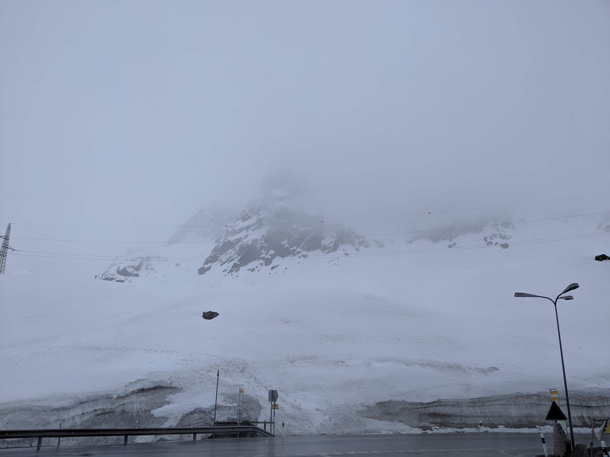 The weather started with complete cloud coverege and temperatures around 16°C and turned into light rain and 3°C on top of the Julierpass. All in all, the low temperatures and the rain made for a long ride without any decent photo opportunities. My equipment however was nearly perfect. I was never cold or wet, just some mild fogging up in my helmet from time to time.