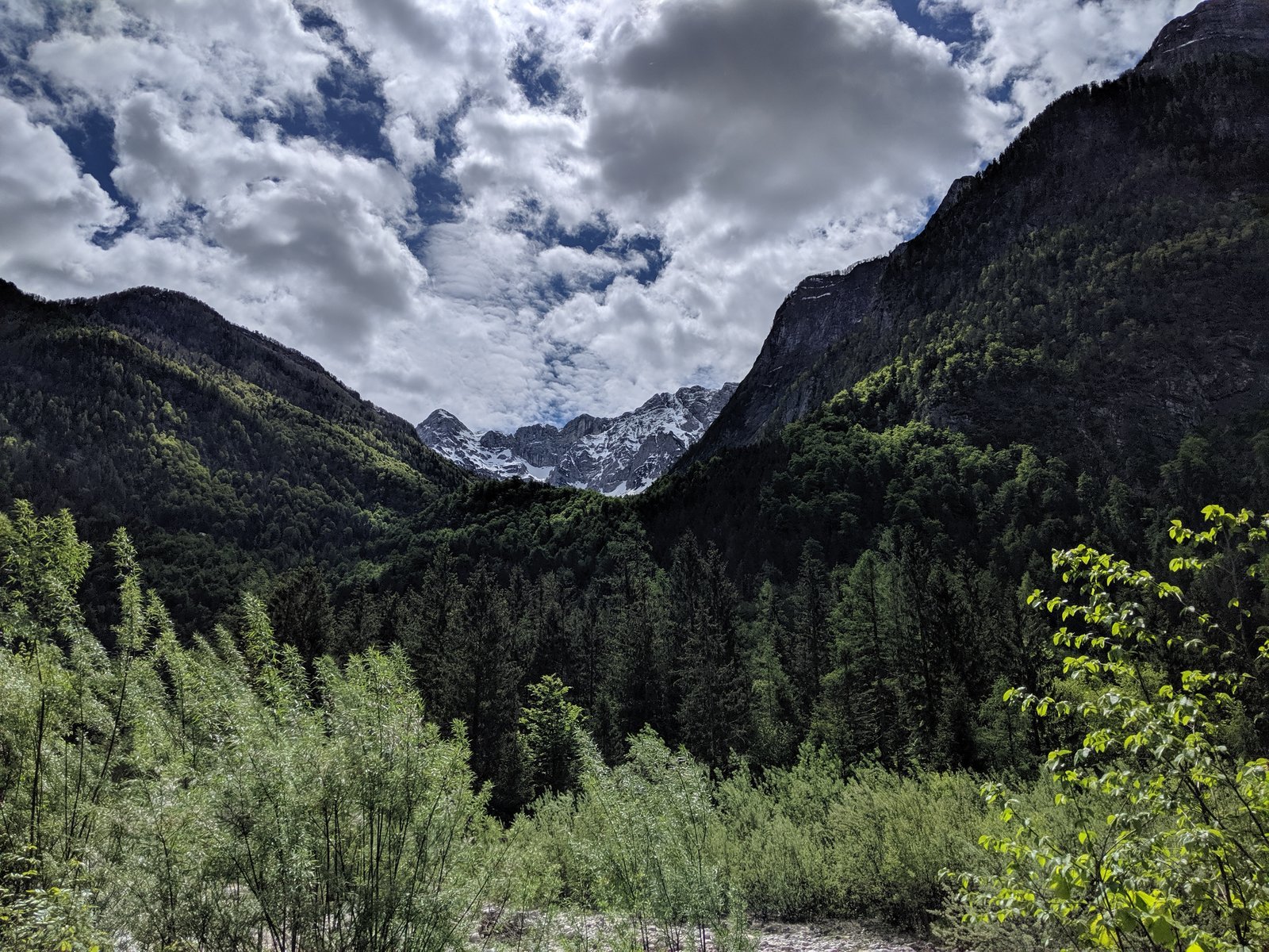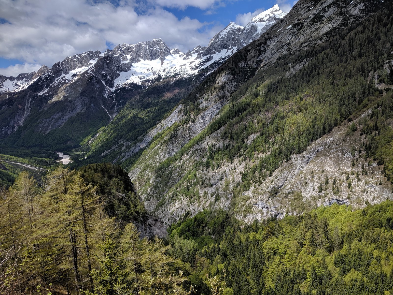 The destination for today was Ljubljana, the capitol of Slovenia. The planned itinerary would have been over Austria and down the Jezersko pass. While talking yesterday evening, a local recommended to do the Vršič pass instead though, which is the highest pass in all of Slovenia. So I took a right turn right when leaving the village and entered the fairy land…