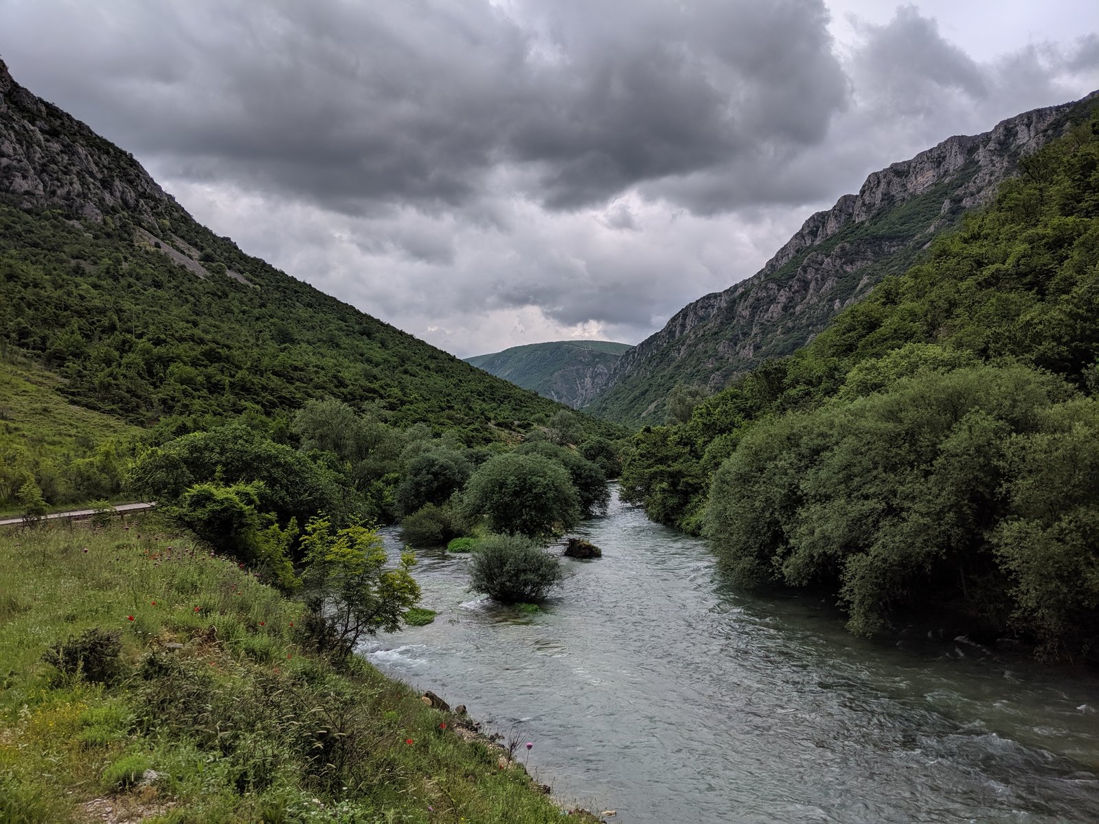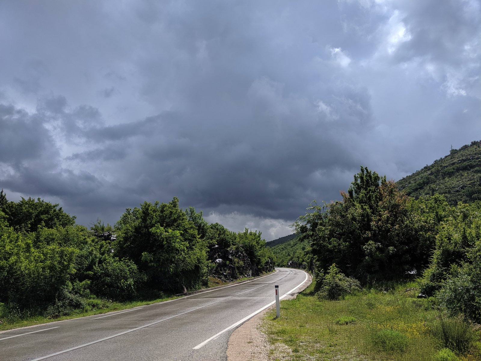 Sadly, the pictures don’t do this scenery justice. After days of seeing the Adriatic coast, this was definitely a welcome change. The smell of fresh air while driving through kilometers of forests, only to be interrupted by an old diesel VW Polo producing more CO² in 5s of acceleration than a Swiss car is allowed in a year…