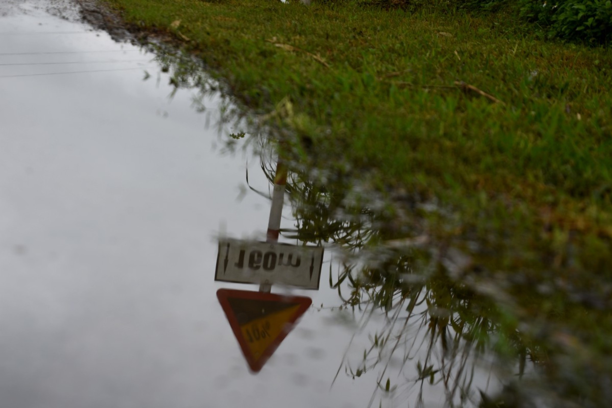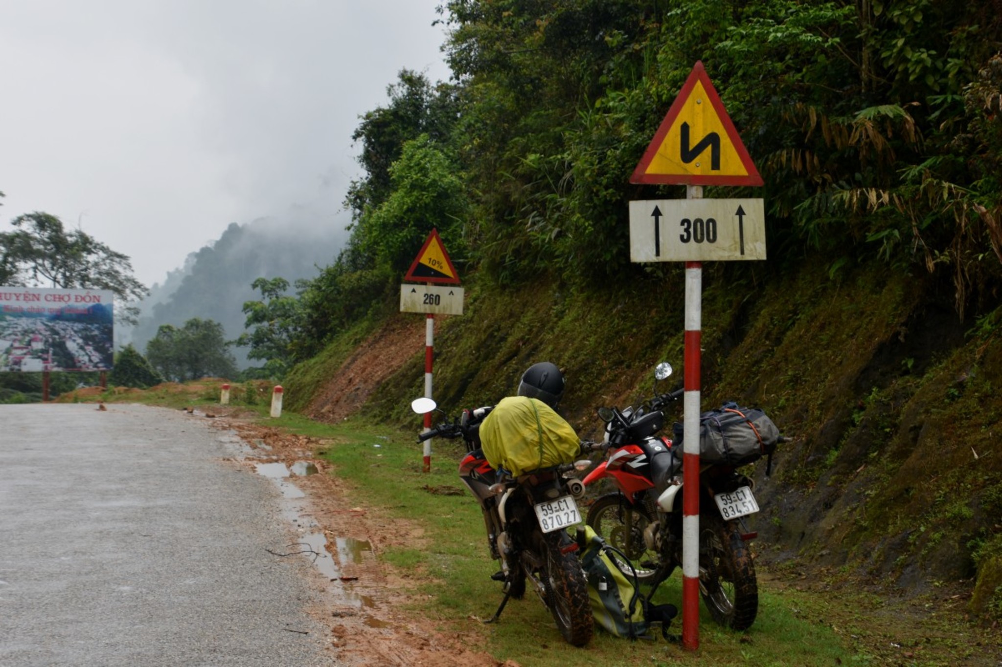 About ten minutes after leaving the Honda dealer’s garage it started raining. So we decided to stop for having breakfast. It didn’t stop for the rest of our trip but it’s dry since we arrived. Good timing. Our arrival had to be deserved today. About 50 km before Bac Kan we had to slow down drastically and drive very carefully for about 10 kilometers. There was an oil film covering the street in its whole width. Combined with the rain this section has been a slippery affair. Maybe it’s the way they get rid of the oil from our oil changes…?