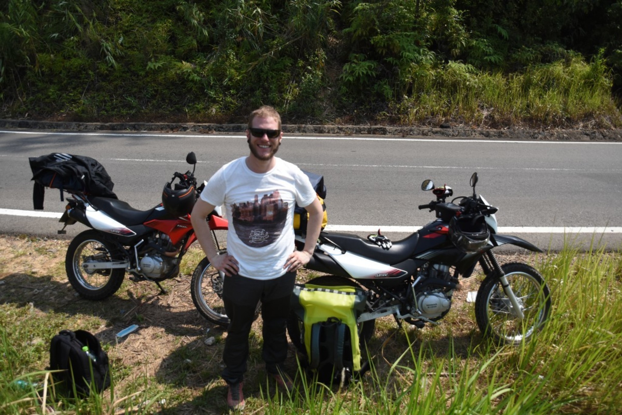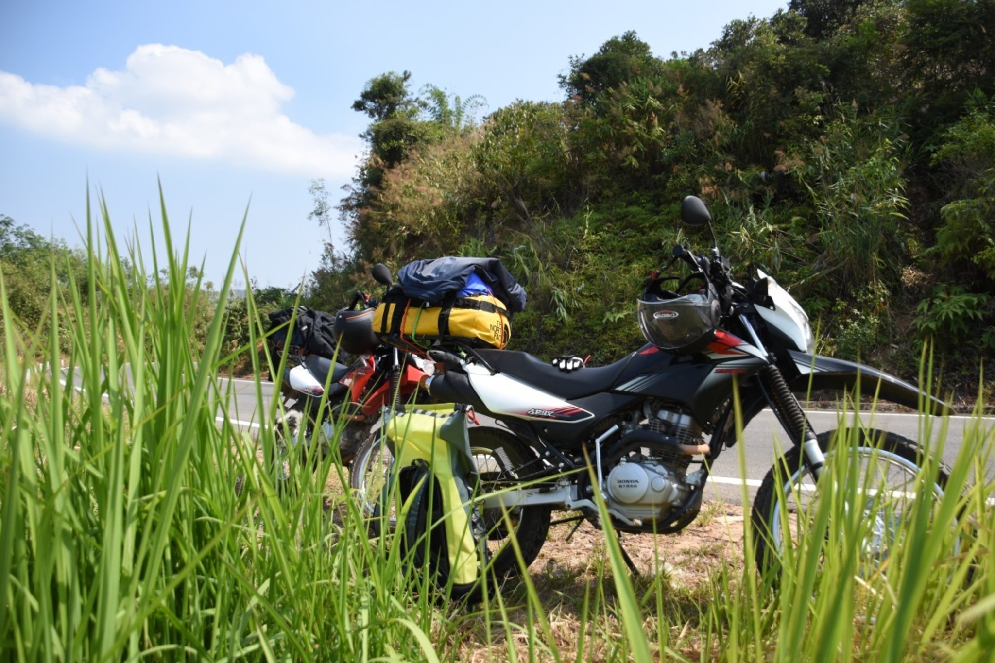 Many people waved to us - especially the children. Now our trip started to be a real motorbike trip. We drove over mountains and had to manage uncountable turns. But to expect that we were able to raise our travel speed is too optimistic. We had to beware of holes in and stones on the road at any moment. If I had to describe the street with a song title, I would choose “The long and winding road” from The Beatles. However this circumstances brought us more time to enjoy the beautiful landscape of Vietnam.