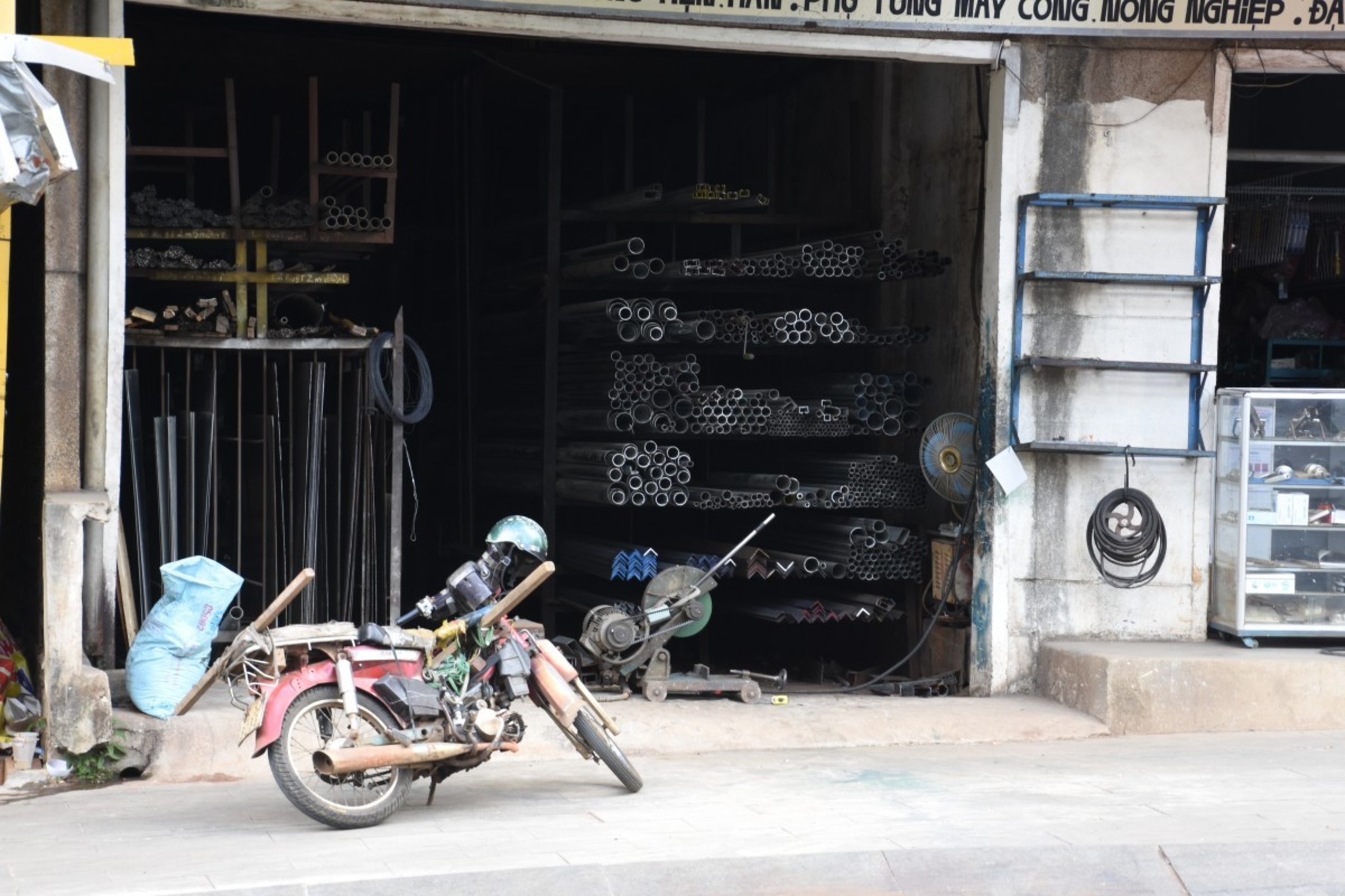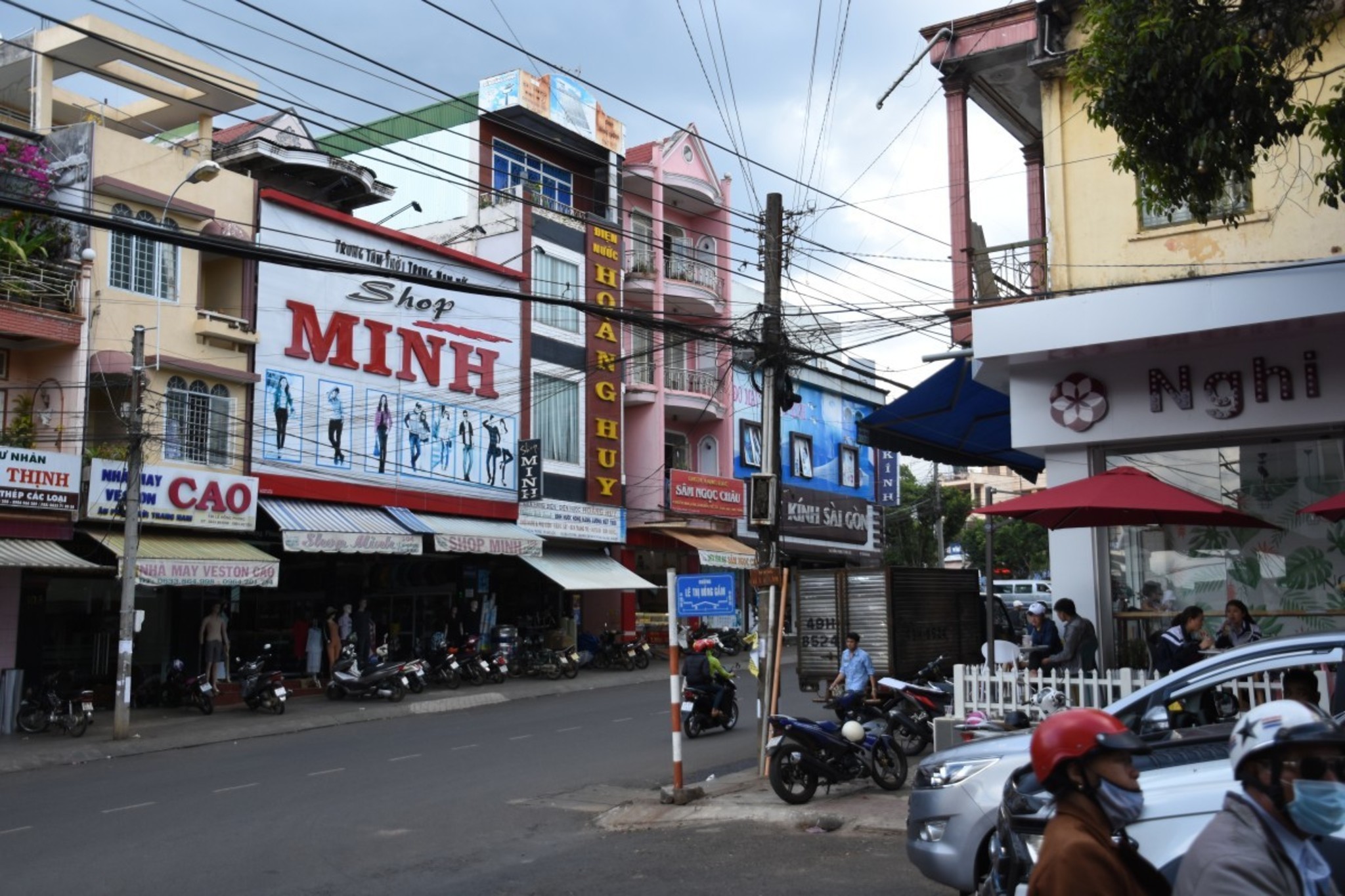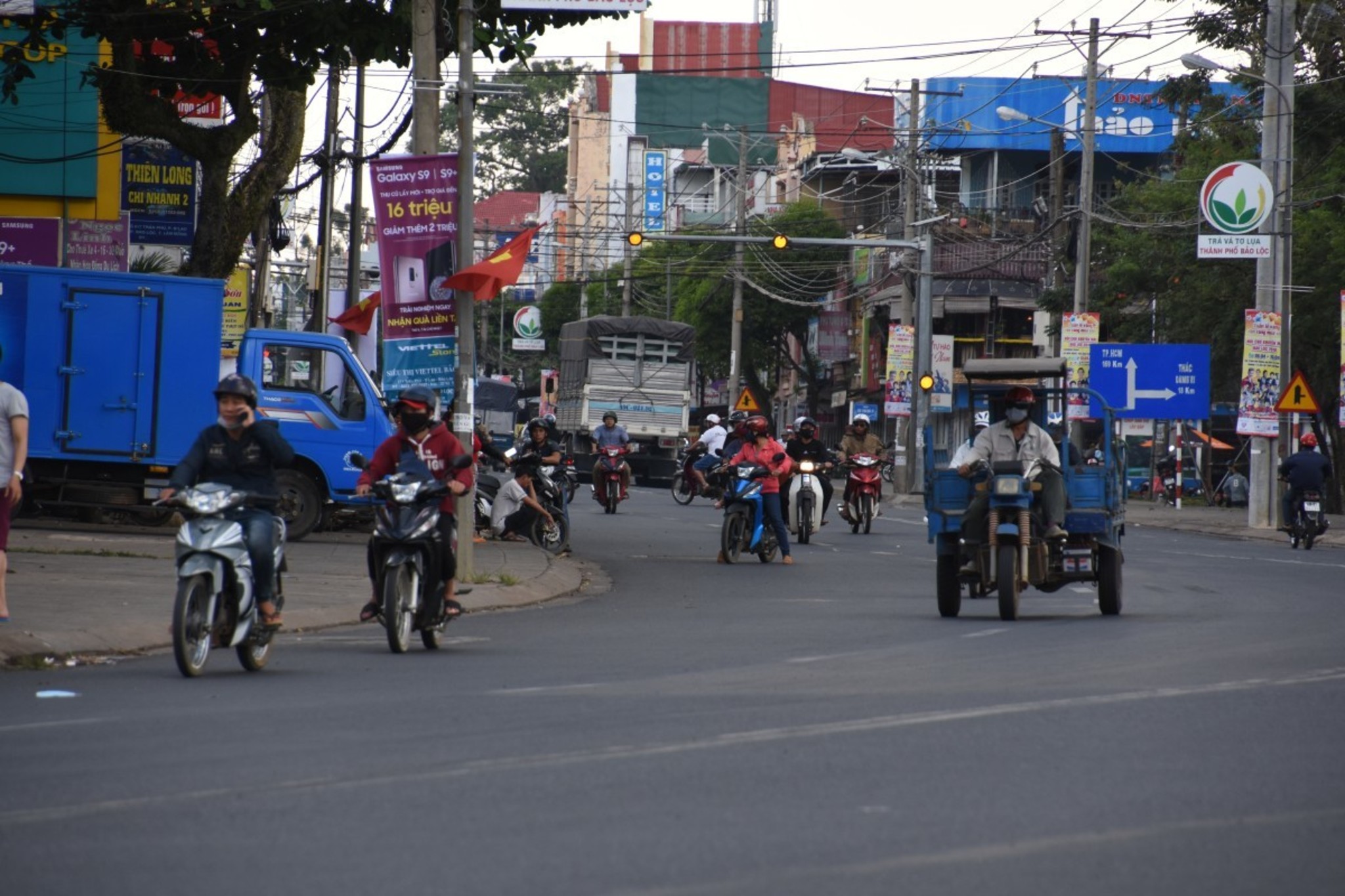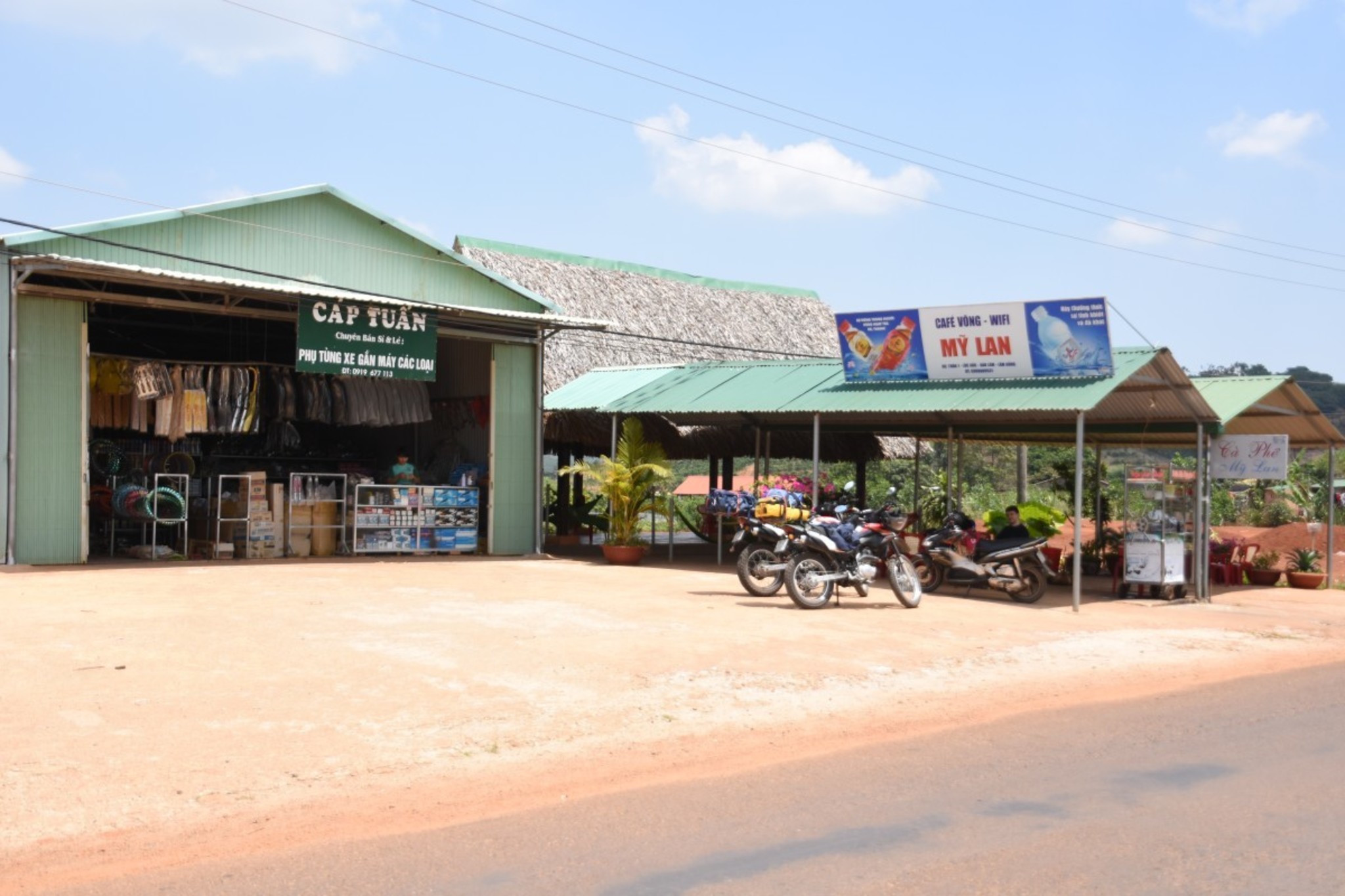 Hien was preparing dinner while we visited Bao Loc. Bao Loc seems to be a quite rich city. People ride modern mopeds and dress western style. We’ve seen American style coffee shops and a huge gym. But our attempt to visit a silk factory failed. The silk production seems to be a well hidden secret. Finally we bought a mobile phone mount. From now on, we are able to use the mobile phone as a navigation system. This will reduce our stops to check the map significantly. In the heat of Vietnam’s south a very welcome reduction.