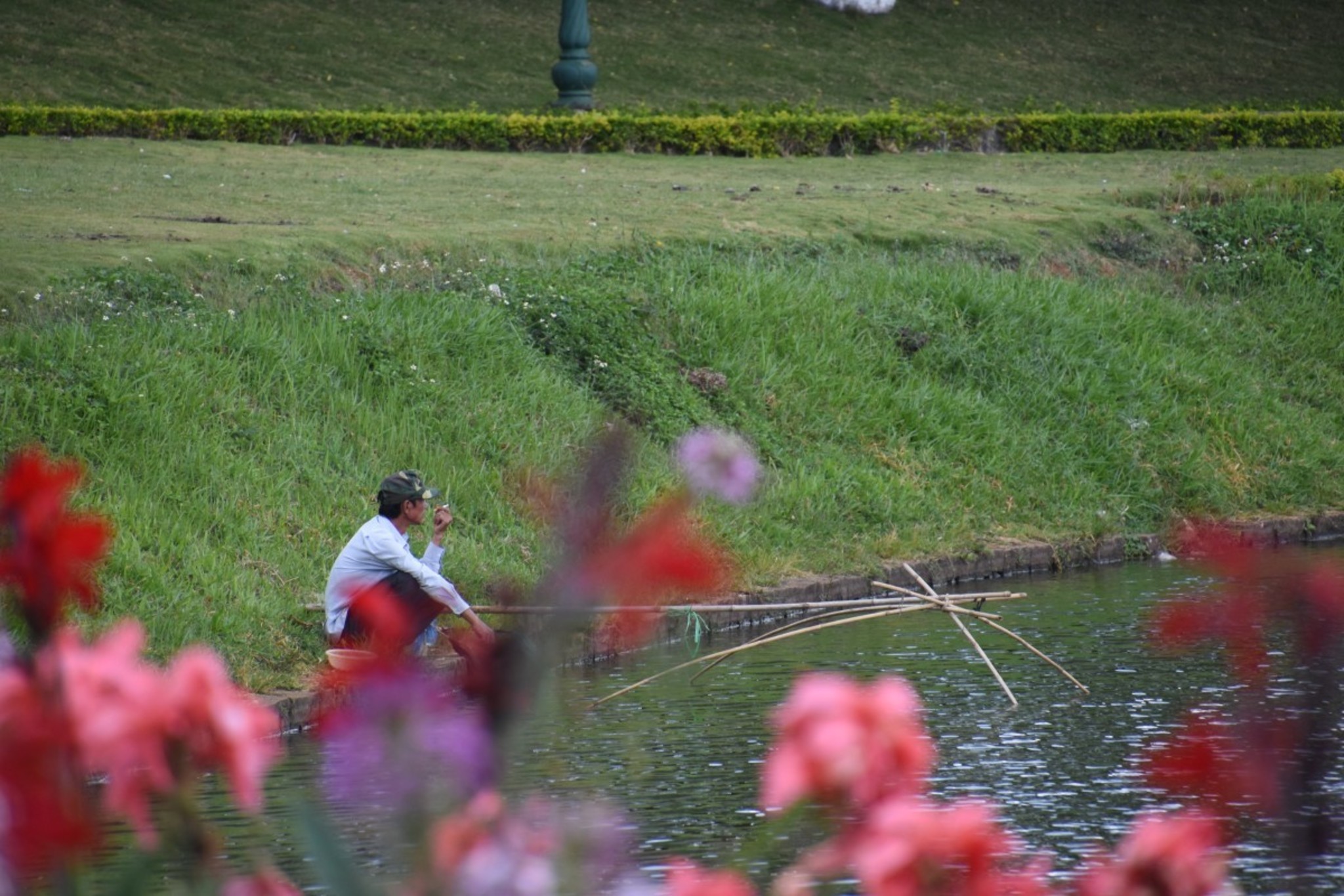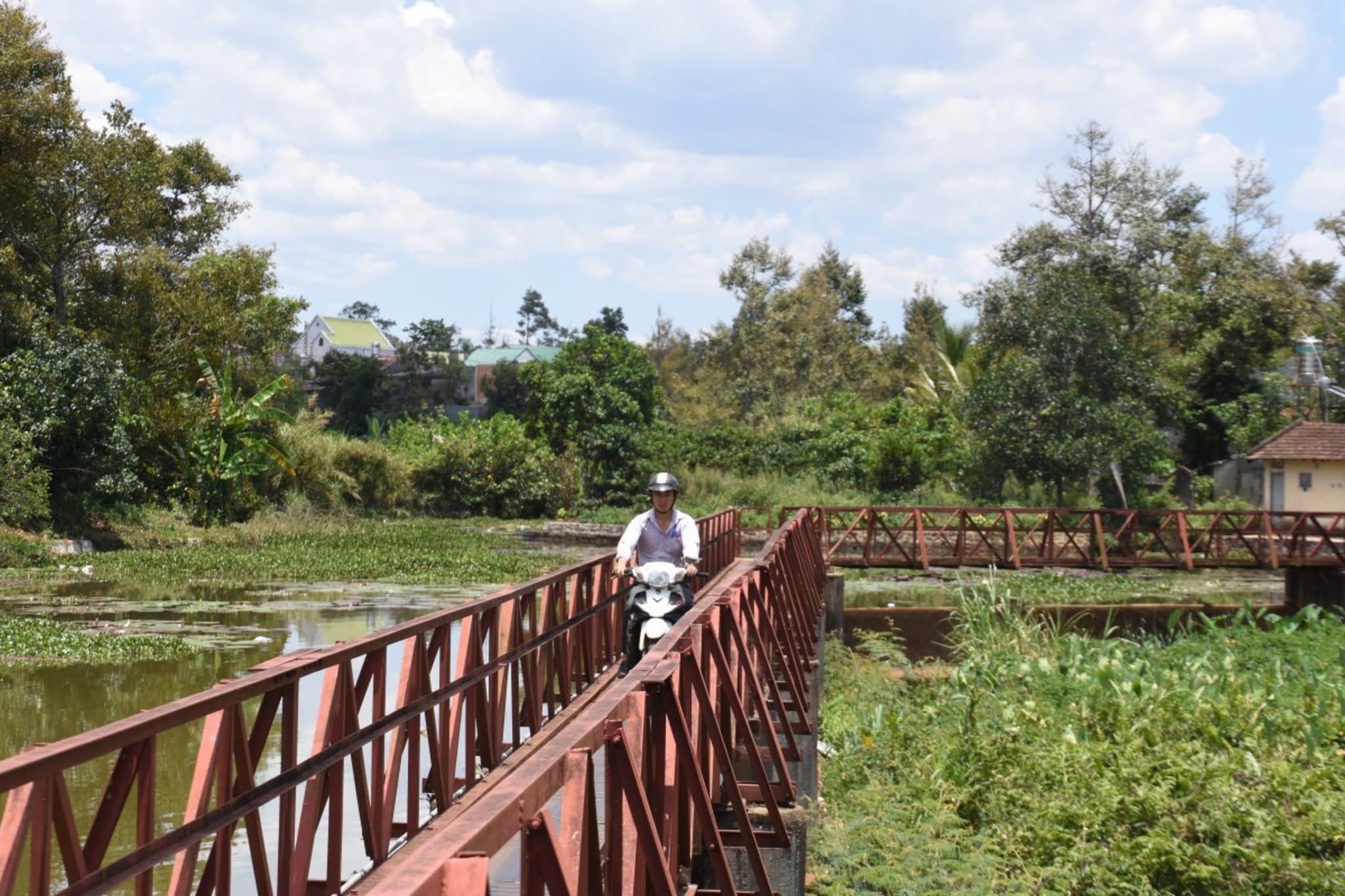Today we started our day early with a chilled coffee and some pho (a Vietnamese noodle soup). We wanted to reach Bao Loc in time to see something from the city and to visit the silk and tee productions around. Quoc, our host from the Spirit Garden Lodge, suggested to take a back road. So we did. After a few minutes we had to pass a narrow bridge and from this moment on, we met a completely different Vietnam. Almost no traffic but many farms, cattle, corn fields and tee plantations.