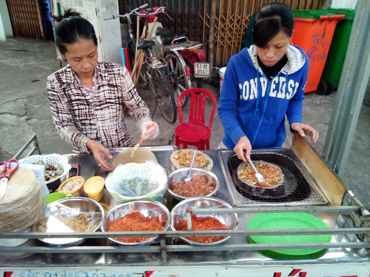 For breakfast after visiting My Son we had our best Banh Mi until now. Banh Mi is a french baguette stuffed with whatever they have. A mix between French and Vietnamese kitchen, usually butter, meat, coriander, different spices, fish sauce and a another sauce I don’t know. A few kilometers outside Hoi An the prices for street food were just as usual in rural areas. That means about 80 cents for two baguettes.