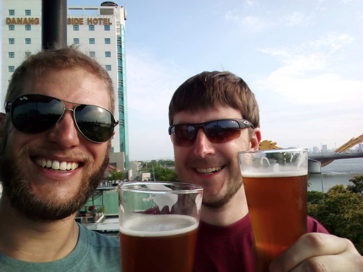 After our experience drinking Heineken with ice, Ste was searching for micro breweries in Vietnam and found 7 bridges in Da Nang. After some delicious street food we went to this brewery. The roof top bar was the place we stayed until dawn. We just decided to leave as we’ve seen the IPA is available again (they ran out of it before). We took the chance to taste it and had a little talk with the owner. Good decision, it was delicious.