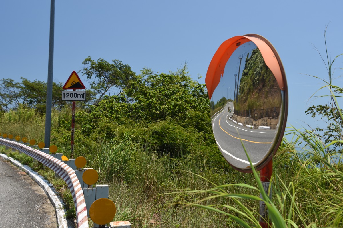 The last part of the mountain road was a narrow concrete path through some woods. It was just wide enough to have a motorcycle and a car pass. Luckily, there was only like one or two cars up here and the other traffic was also on the low side. We passed a Russian guy on a rental scooter who we would meet again on the top. His scooter was barely functional, had very bad tires, a break which didn’t work too well and no excess power at all.