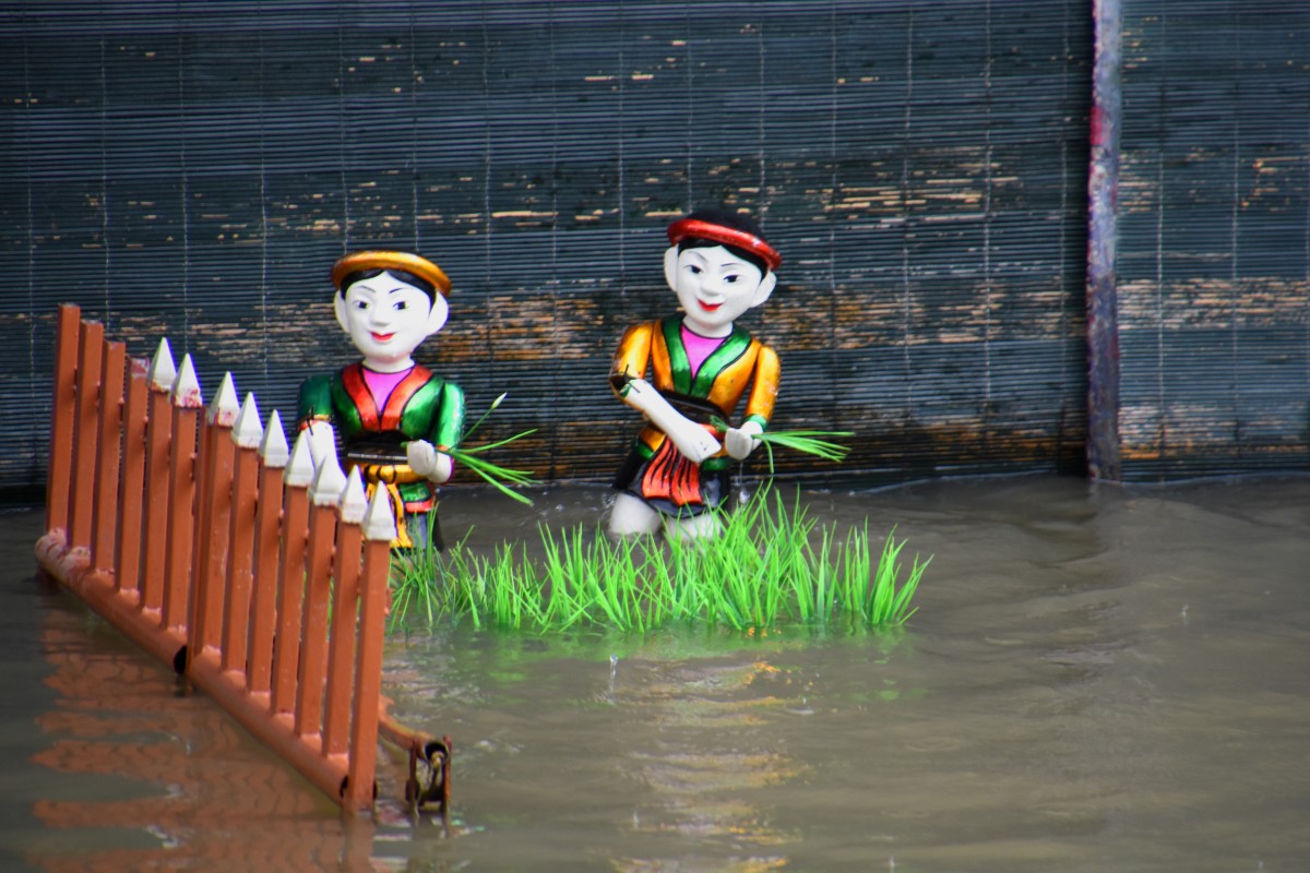 Early in the Saturday’s morning we got picked up by a minivan from the Indochina Junk company in old town to transfer to Ha Long City. Everything was perfectly organized. After a short stop at a very expensive art selling station for tourists we arrived in Yen Duc for lunch and a traditional water puppet show. It was quite impressive how the actors behind the curtain moved their puppets through the water. And the food… Let describe the food situation for the whole three days in five words: Delicious, but far too much.