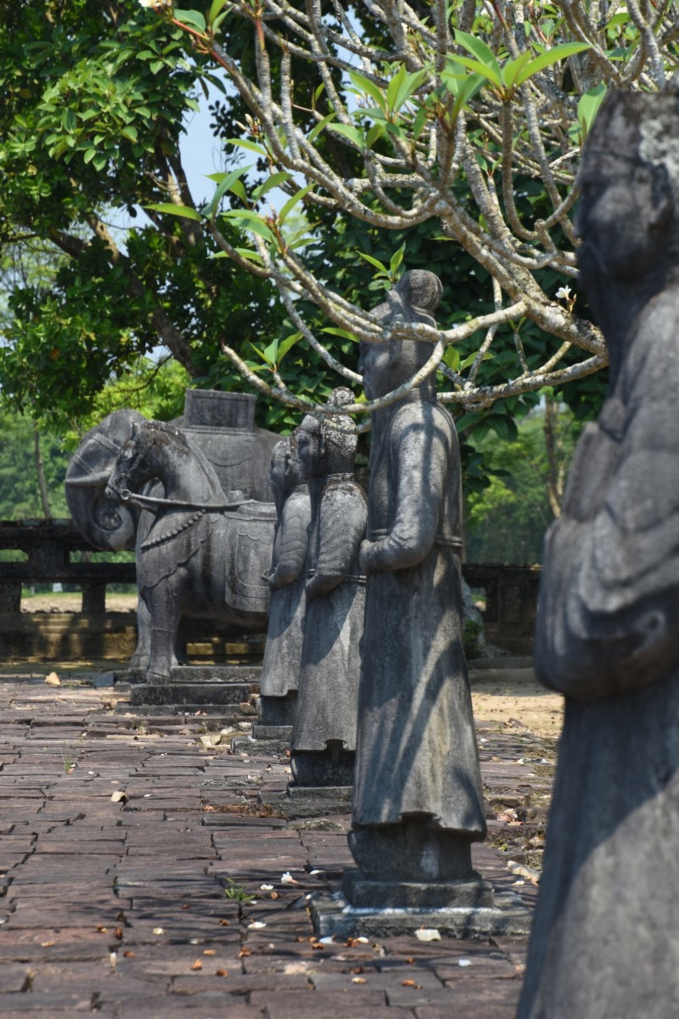 After breakfast we went out to do some local sightseeing. There are a lot of local tombs around the town which are supposedly worth seeing. We left the house to see the tomb of the King Thieu Tri in the morning. It turned out to be a wast of our time. The tomb was off the main road, behind a school. It was being guarded by a few cows and a barking dog. It had a few stone figures in front of it, but the tomb itself was badly maintained.