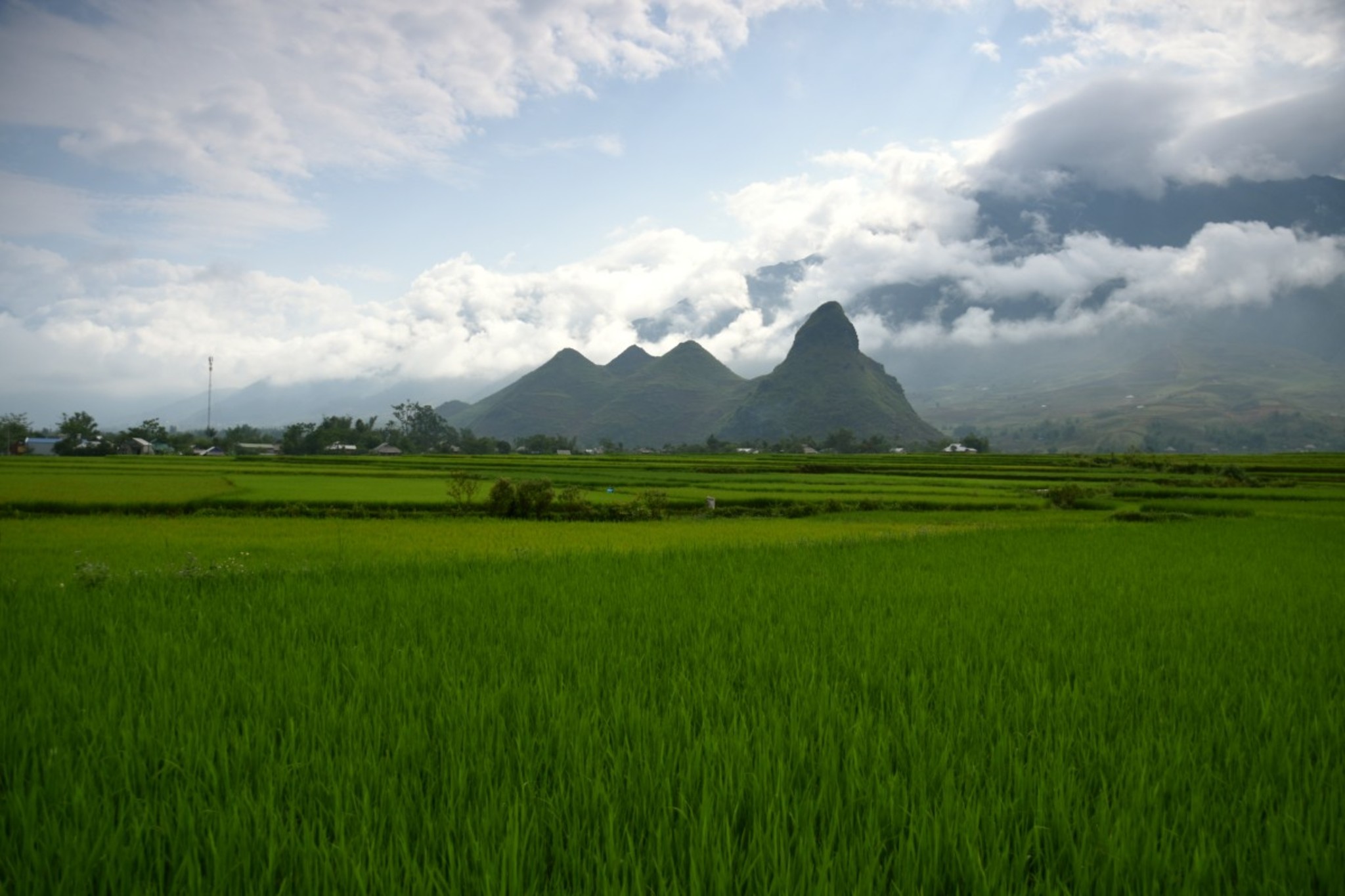 The forecast wasn’t that good but the weather stayed surprisingly sunny the whole day. Lucky us it turned to a outstanding tour. Passing the rice fields in the valleys and coffee plantations at the mountainsides we’ve seen many small minority villages again. Most of the mountain tribes Montagnards people don’t live from the wet rice cultivation as the other Vietnamese people do. They live from mixed farming, stock-breeding as well as nomadic cropping, often by fire clearance. The bigger villages we’ve seen are a mix between Montagnards and Vietnamese people which are settled by government to connect the mountain region to the rest of the country. Last but not least because of the natural resources of the north. As a result the Montagnards have become a minority in their territory as well.