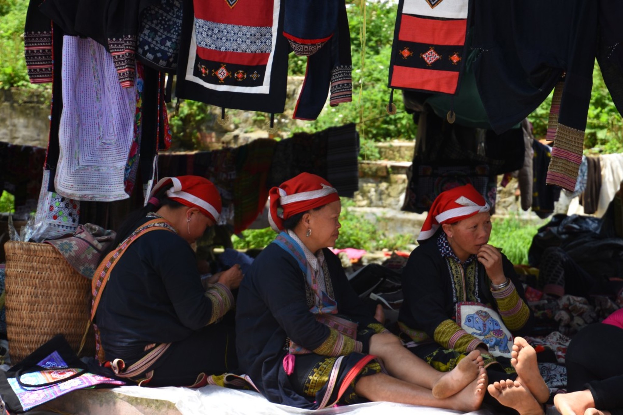 If we would have seen people wearing a traditional costume the first time here in Sa Pa we would have been sure they only do it for commerce. Everywhere you can buy their embroidery, drapery, silver and clothes. There are lots of children sitting on the floor selling different souvenirs. It’s a pity to see this. We’ve met kids waving to us while watching cows, water buffaloes or goats. We’ve even seen a boy riding a water buffalo and he seemed to have lots of fun. Here in Sa Pa you seldom see someone smiling. And if they do, they just try to sell something. Our travel guide recommended to visit the Montagnards market. It’s quite possible this market once was nice but today it only seems to be a market for tourists where Hmong and Red Dao sell their souvenirs.